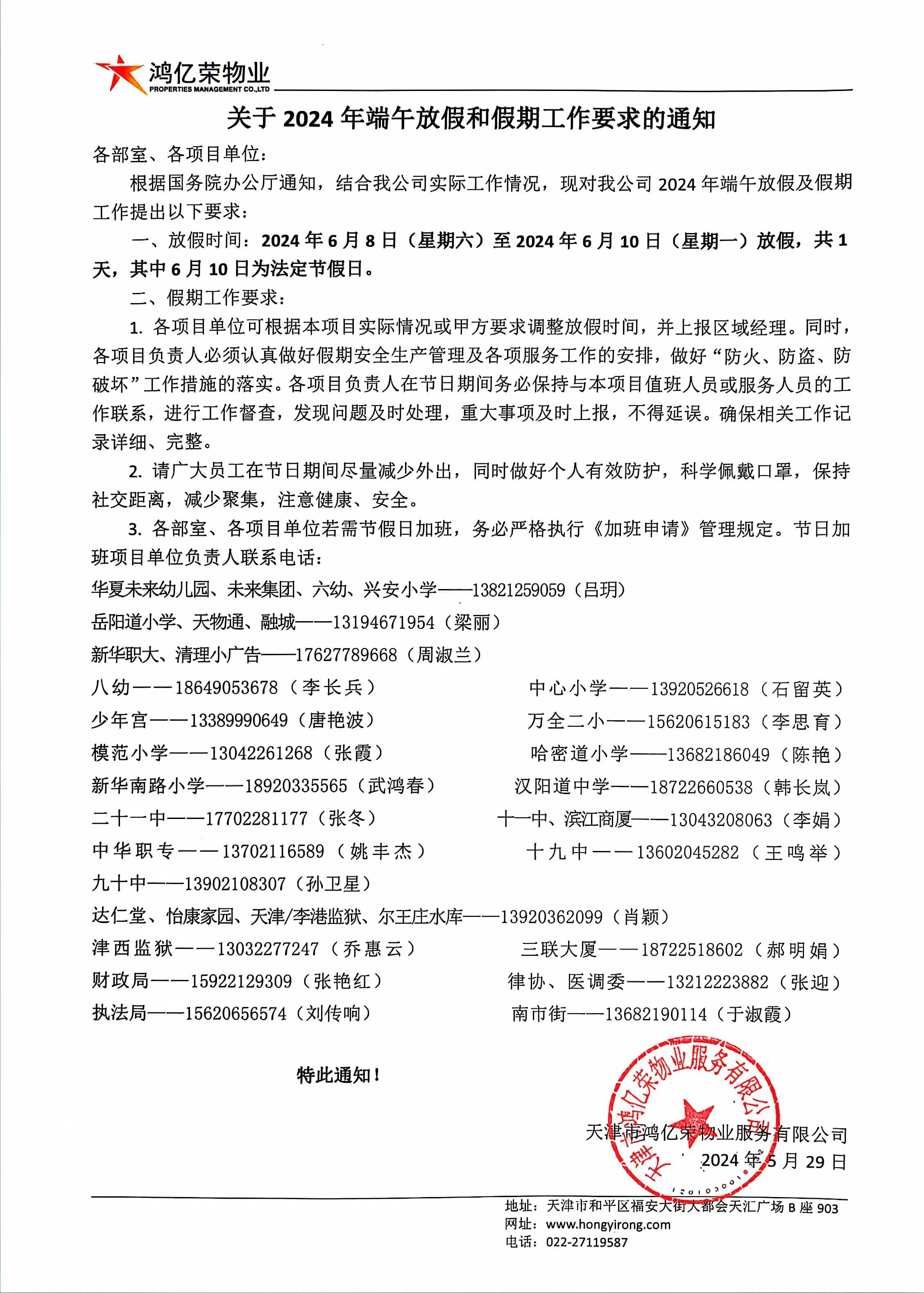 關于2024年端午放假和假期工作要求的通知